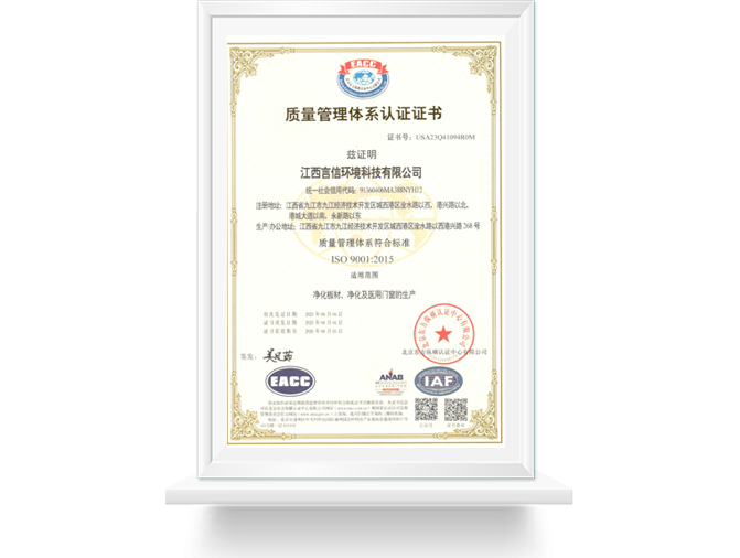 是一家集凈化系統結構類材料研發,設計、生產、施工一體的省級高新科技企業,公司已通過S09001質量管理體系、IS014001環境管理體系IS045001職業安全健康管理體系認證。